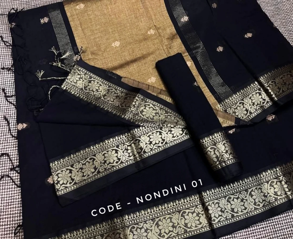 Black cotton saree package – nondini 01