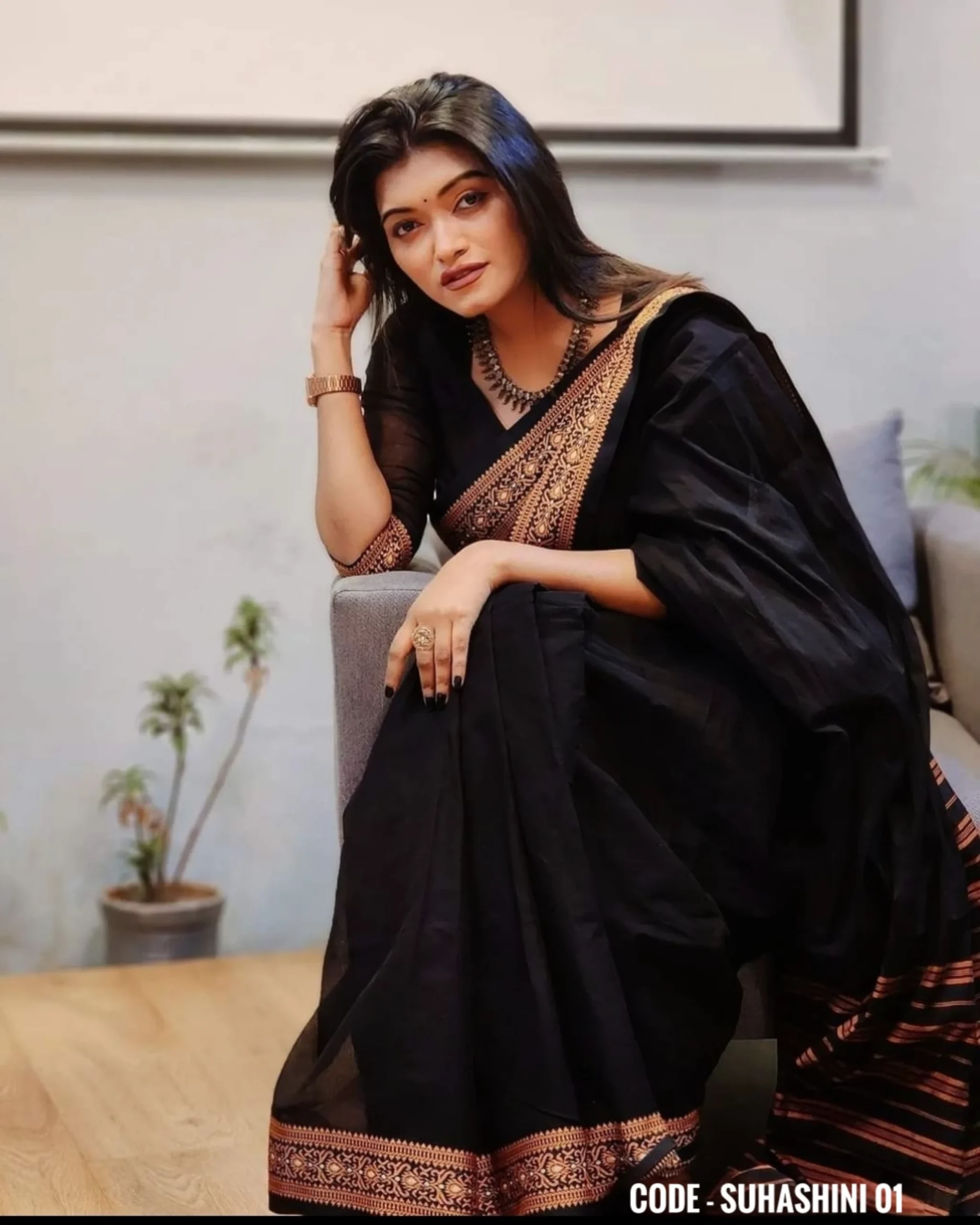 Black cotton saree package – Suhashini 01