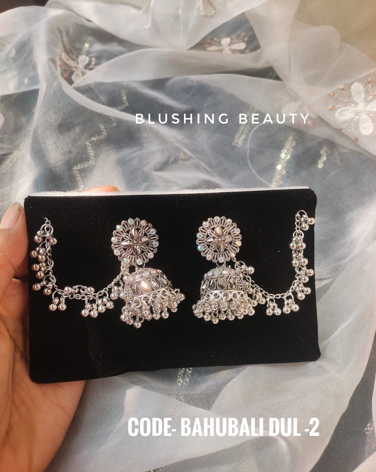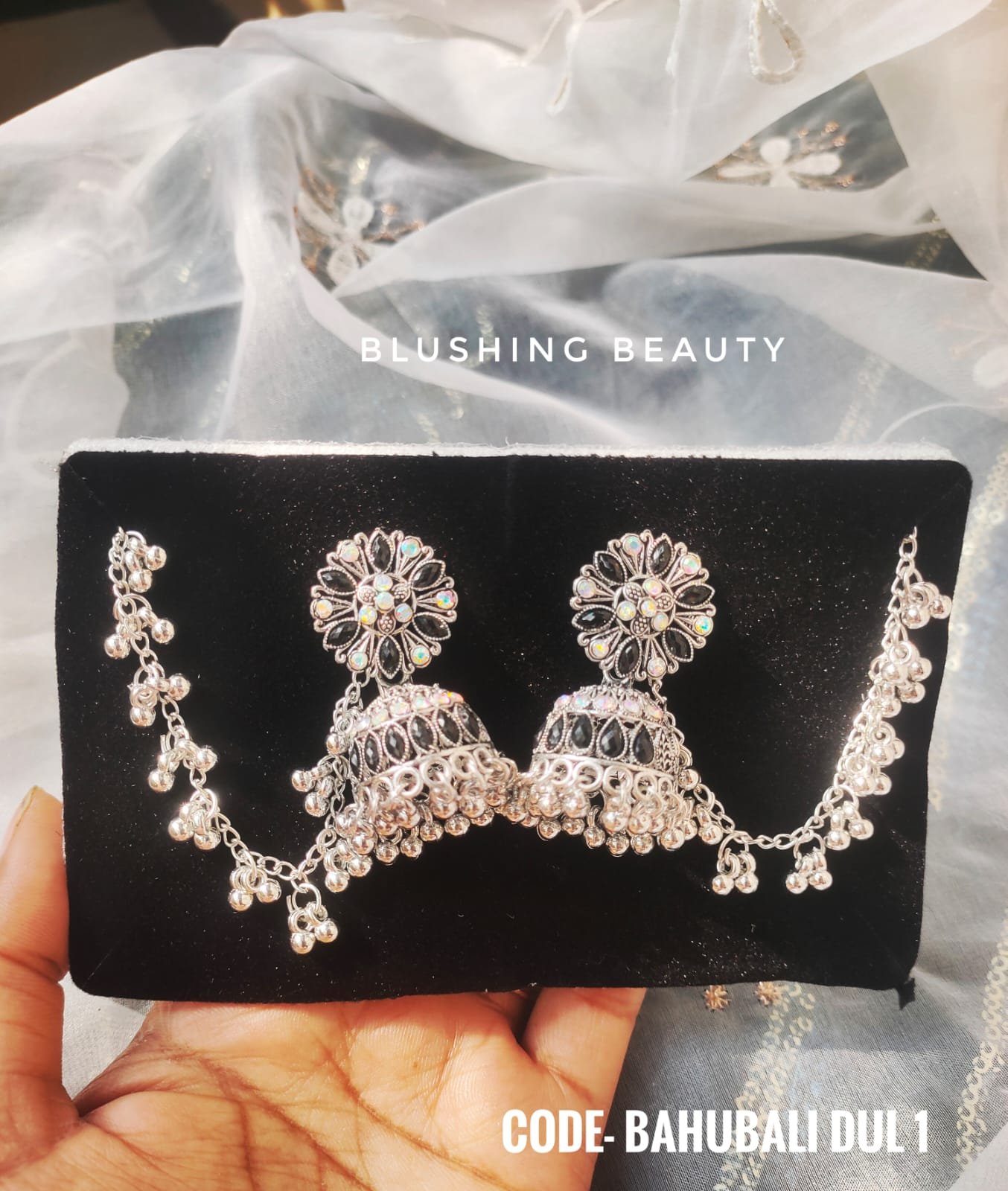 Be the first to review “Royal Bahubali Oxidized Silver Jhumka with Ear Chain” Cancel reply